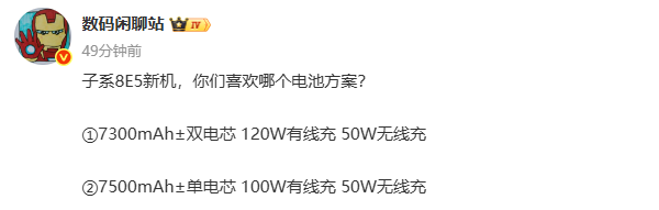 据爆料,其中一款机型采用“7300mAh±双电芯”方案,支持120W有线快充和50W无线充电。该设计在保证大容量的同时,兼顾高速充电体验,尤其120W有线充电可在短时间内快速补能,适合高强度使用场景。双电芯结构通常有助于提升充电效率与电池寿命管理,但可能对内部空间布局提出更高要求。