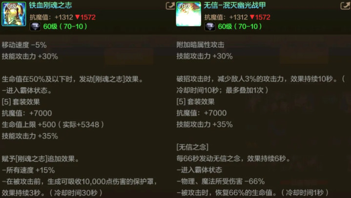 “刚魂套”属于特别中规中矩的一套装备,伤害一般、但坦度特别高;